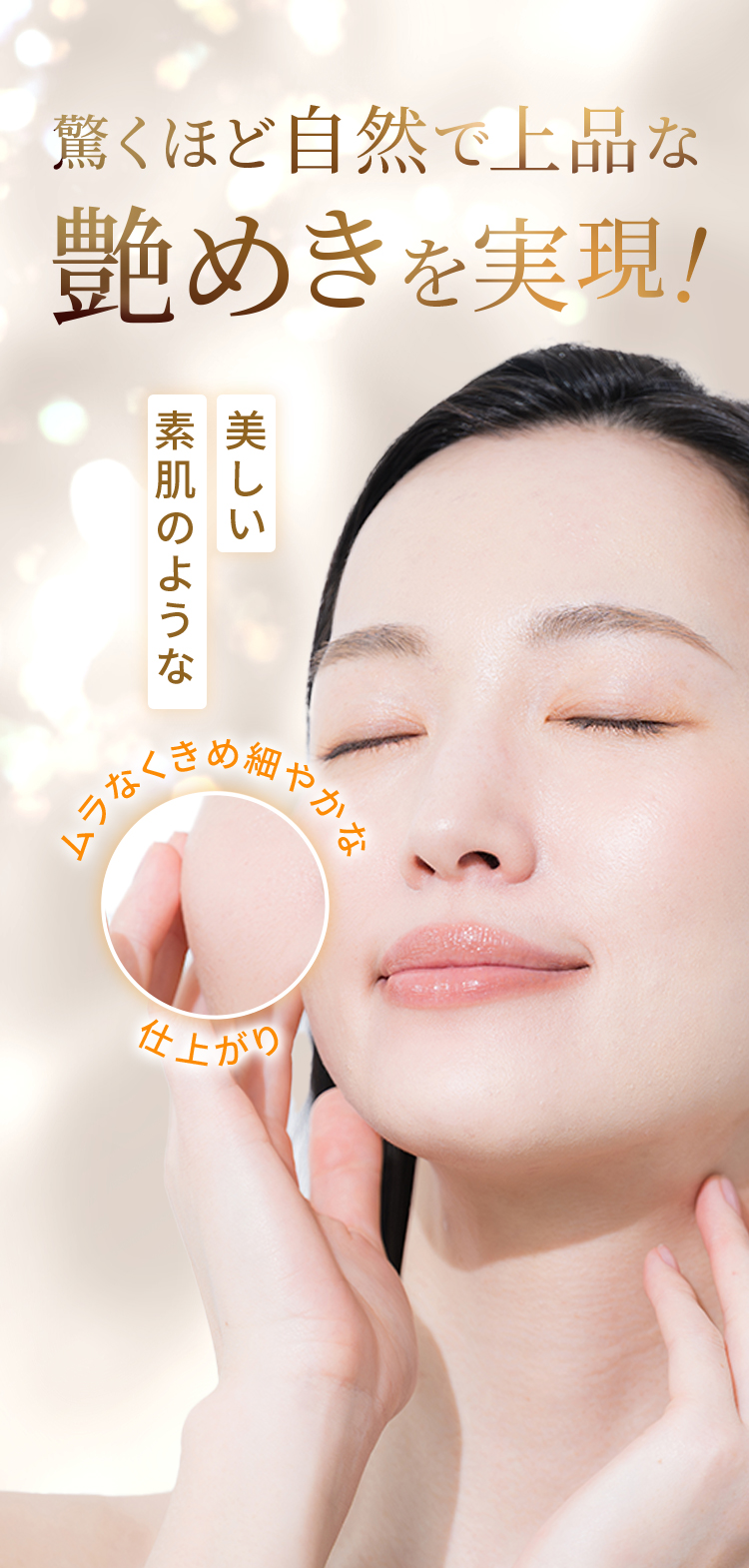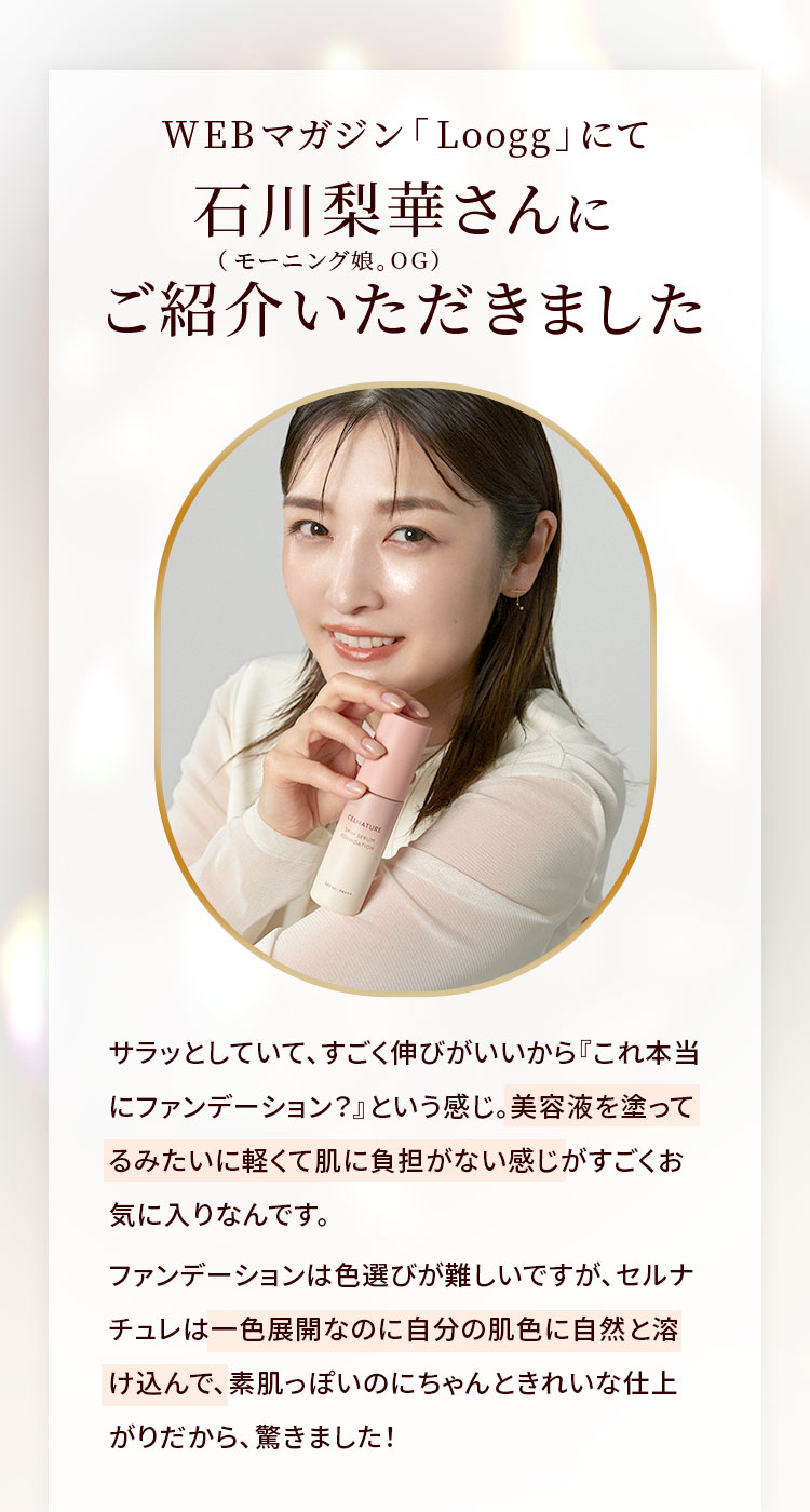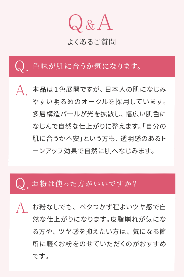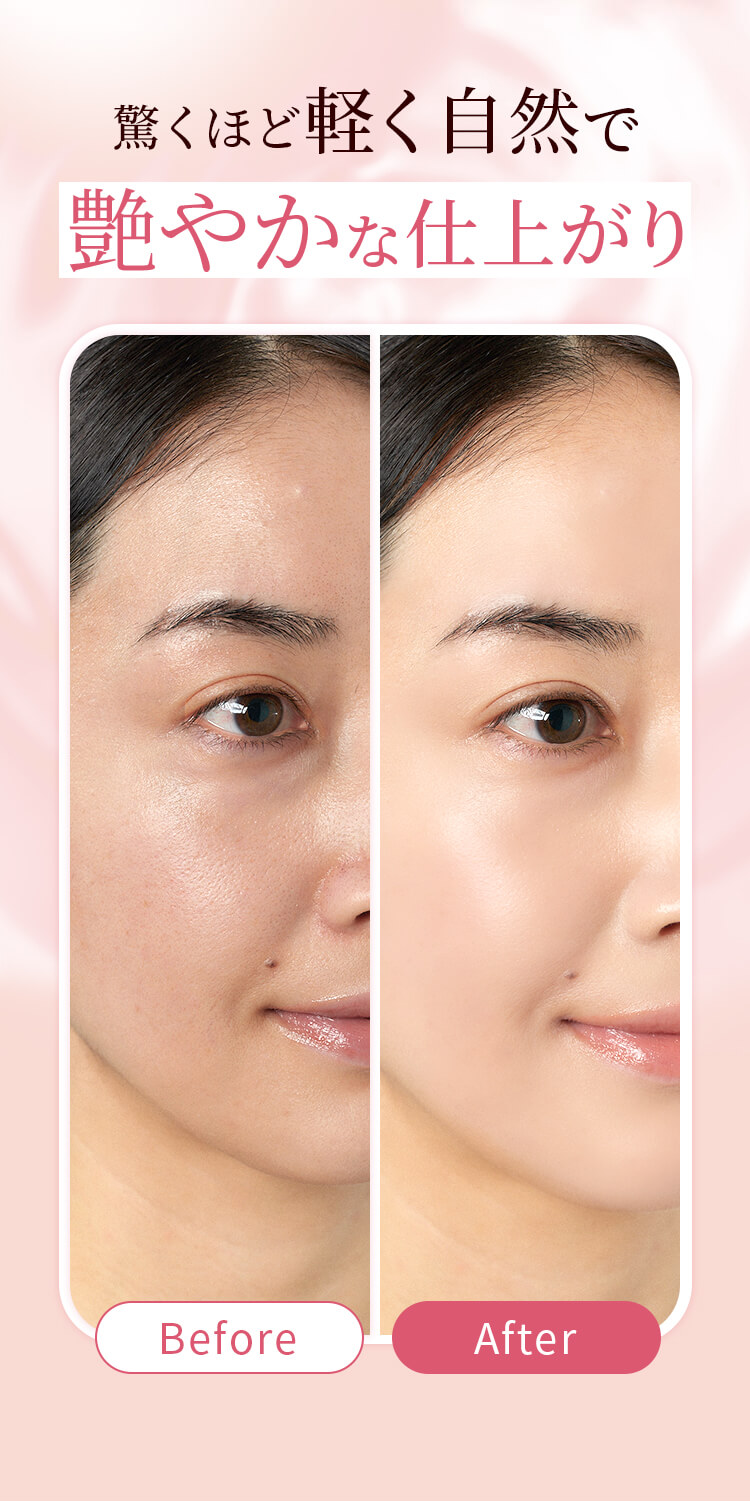 みずみずしいので、うるおいがあって明るくみえます。薄づきで伸びがよくて、しかも落ちづらい。朝に使って、昼に軽く抑える程度で日中いけます。