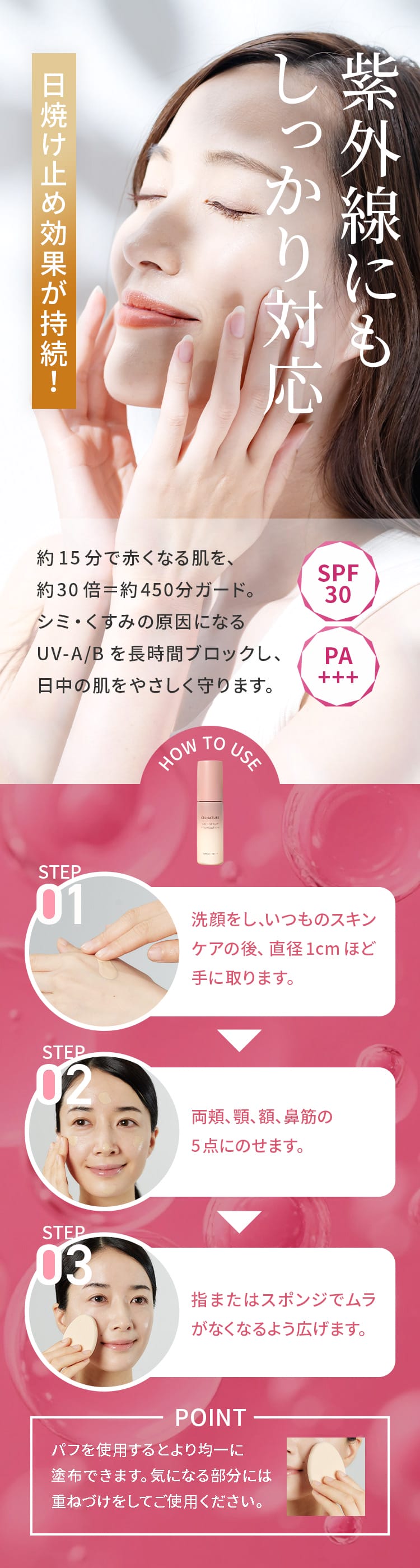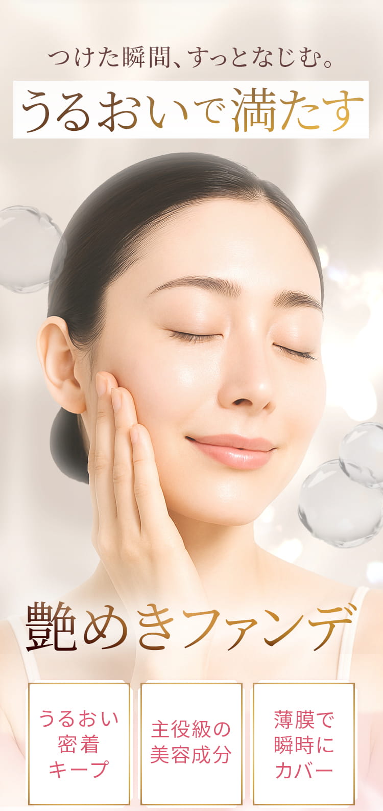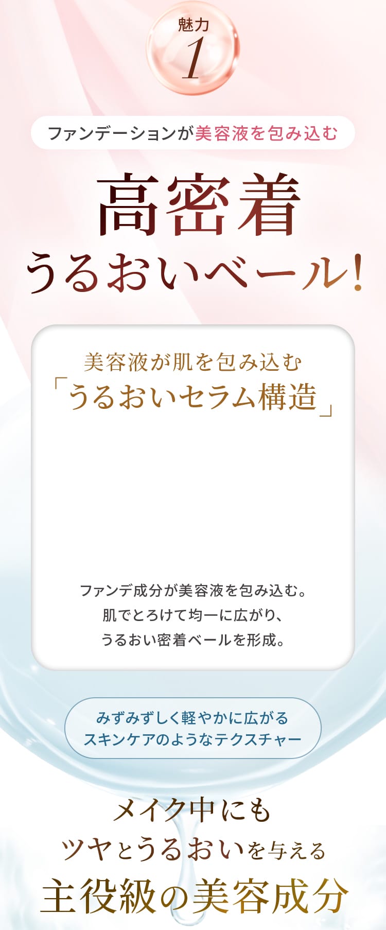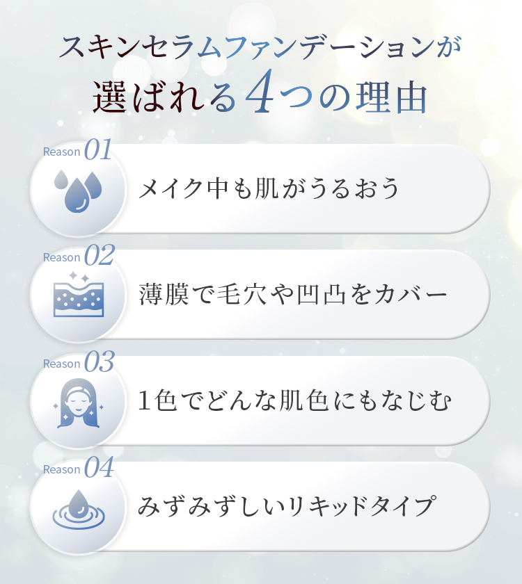 みずみずしいので、うるおいがあって明るくみえます。薄づきで伸びがよくて、しかも落ちづらい。朝に使って、昼に軽く抑える程度で日中いけます。