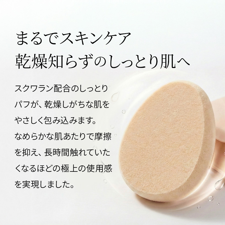 専用に開発した、スクワラン配合パフとのセットです。